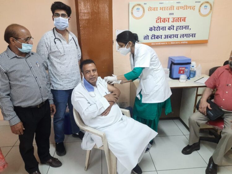 चण्डीगढ़ : से. 29 स्थित सेवा भारती में गत रोज टीका उत्सव आरम्भ हुआ जिसमें वैक्सीन लगवाने के लिए आम लोगों में भारी उत्साह देखने को मिल रहा है। आज दो दिन में ही लगभग 90 लोगों ने वैक्सीन लगवा ली। संस्था के अध्यक्ष गिरधारी लाल जिंदल ने भी आज वैक्सीन लगवाई। सेवा भारती में ये टीका उत्सव चण्डीगढ़ में वैक्सीनेशन इंचार्ज डॉ. अभिषेक कपिला की देखरेख में चल रहा है जोकि रविवार 18 अप्रैल तक चलेगा। उन्होंने बताया कि अभी तक किसी को भी वैक्सीन लगवाने से कोई भी साइड इफ़ेक्ट देखने को मिला है। सेवा भारती के पंजाब प्रांत के अध्यक्ष अमृत सागर, संस्था के वरिष्ठ कार्यकारिणी सदस्य वेद मारवाह व सुश्री सुनीता भट्ट तथा सेवा भारती के लुधियाना व चण्डीगढ़ में संगठन मंत्री प्रदीप गोयल आदि भी यहाँ मौजूद रहे।