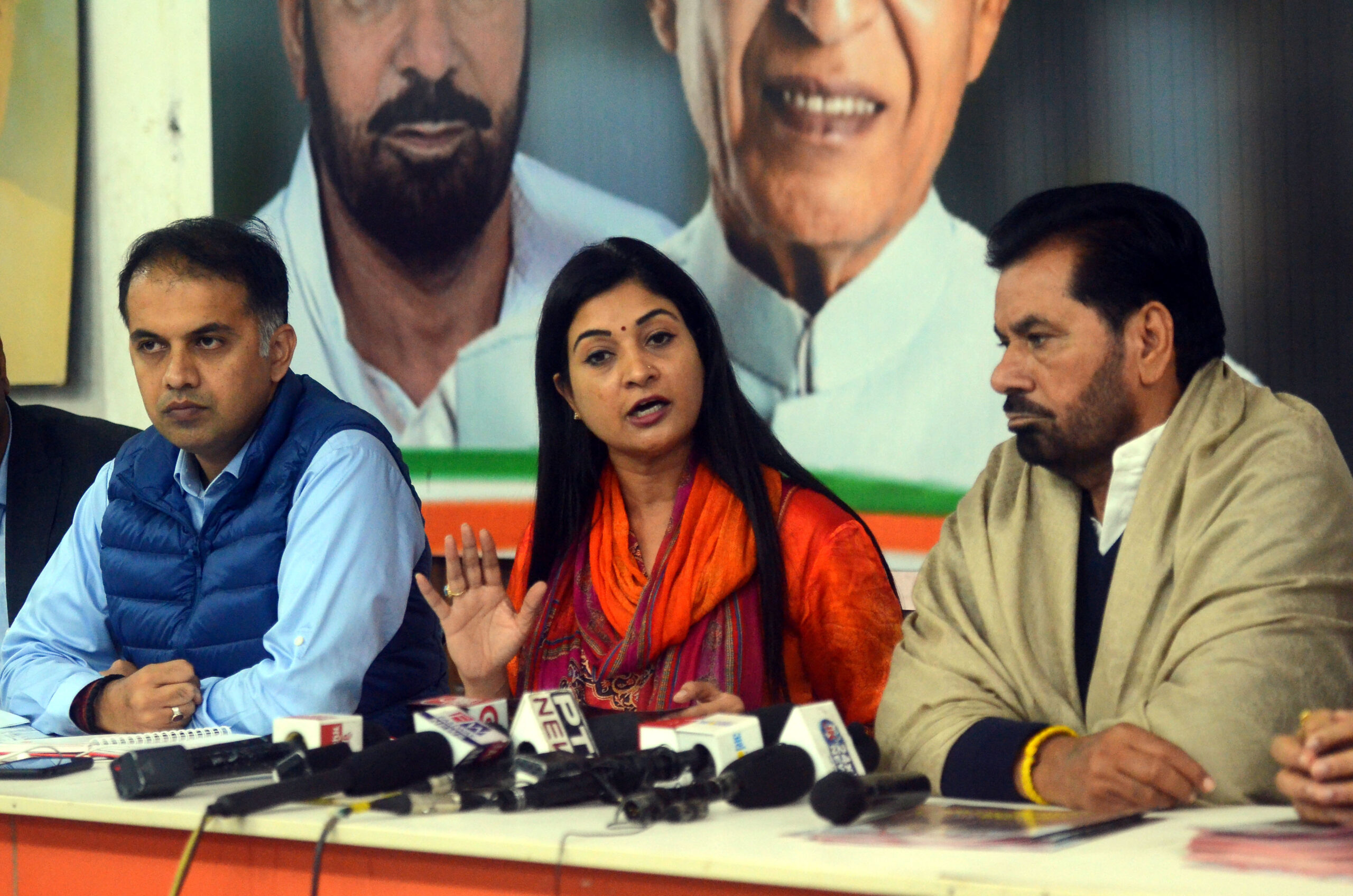 Chandigarh, December 9: Alka Lamba, National Spokesperson of AICC, released Chandigarh Congress Committee’s charge-sheet against 6 years misrule of BJP at MC, at party office in sector 35 here on Thursday. The charge-sheet also includes 15 point by point report cards on BJP so called vision document ‘Sankalp Patra’ to expose its real anti-people face.