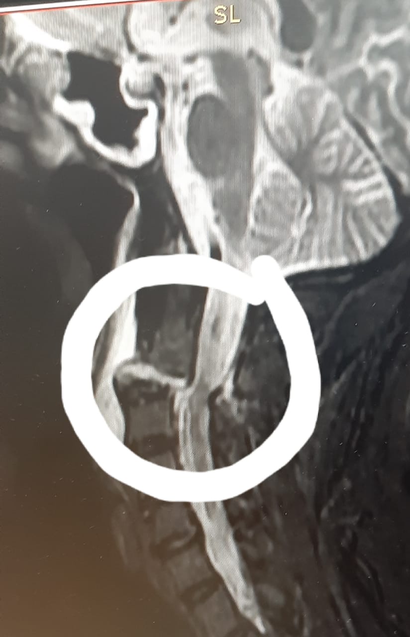 The MRI cervical spine revealed fracture dislocation of C2 over C3 vertebrae. This was a complex cervical spine injury which can be fatal or crippled patient if not treated, said Dr. Vineet Saggar.