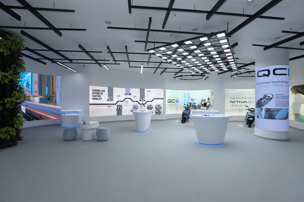Honda’s new EV Concept Store is designed to offer a fascinating experience of the company’s technological advancements. From electric mobility to personal aviation, it captures the essence of Honda’s global innovation. At the heart of the store is a main LED Display, which serves as a digital focal point to engage visitors through interactive content, brand storytelling, and product highlights. It provides dynamic insights into Honda’s electrification journey. A history wall is also on display, exhibiting the remarkable journey and key milestones of Honda over the years.
